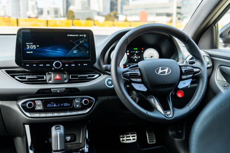 Despite its drab interior and a couple of glaring equipment omissions, the standard i30 N hatch has enough space to handle a small family and all the tech you’d expect in a sub-premium model.