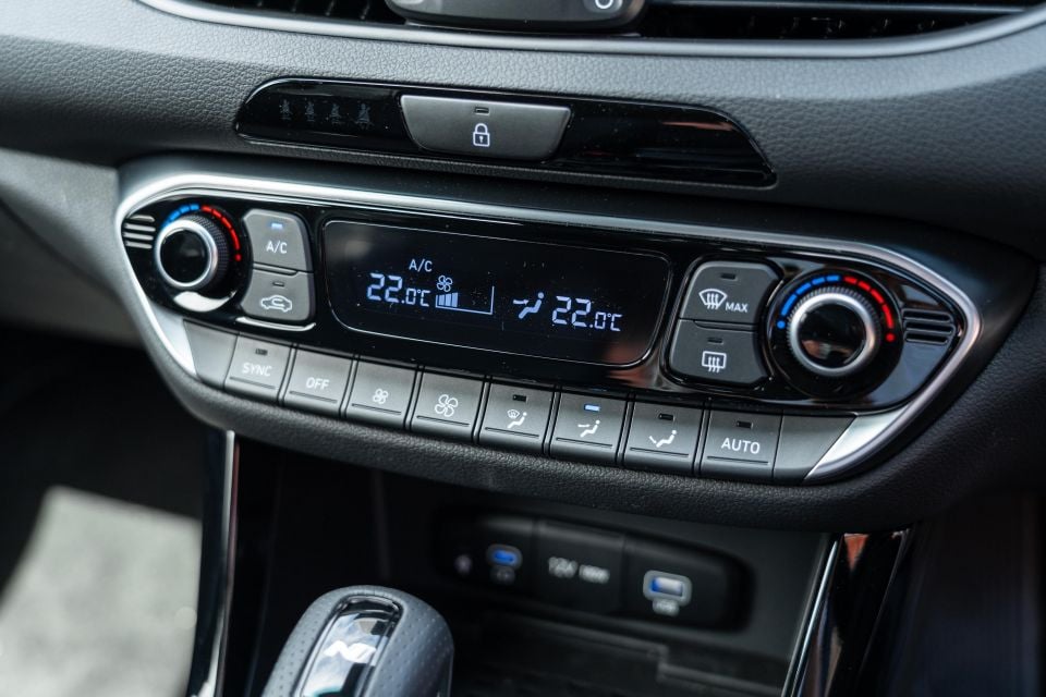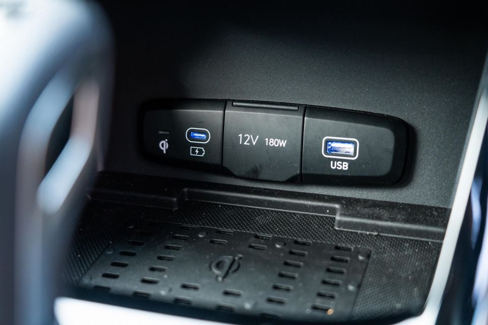 Underneath the centre stack you’ll find a triple treat of charging outlets (USB-A, USB-C and 12V), as well as a wireless charging pad. The i30 maintains physical dials and buttons for the dual-zone climate control system.
