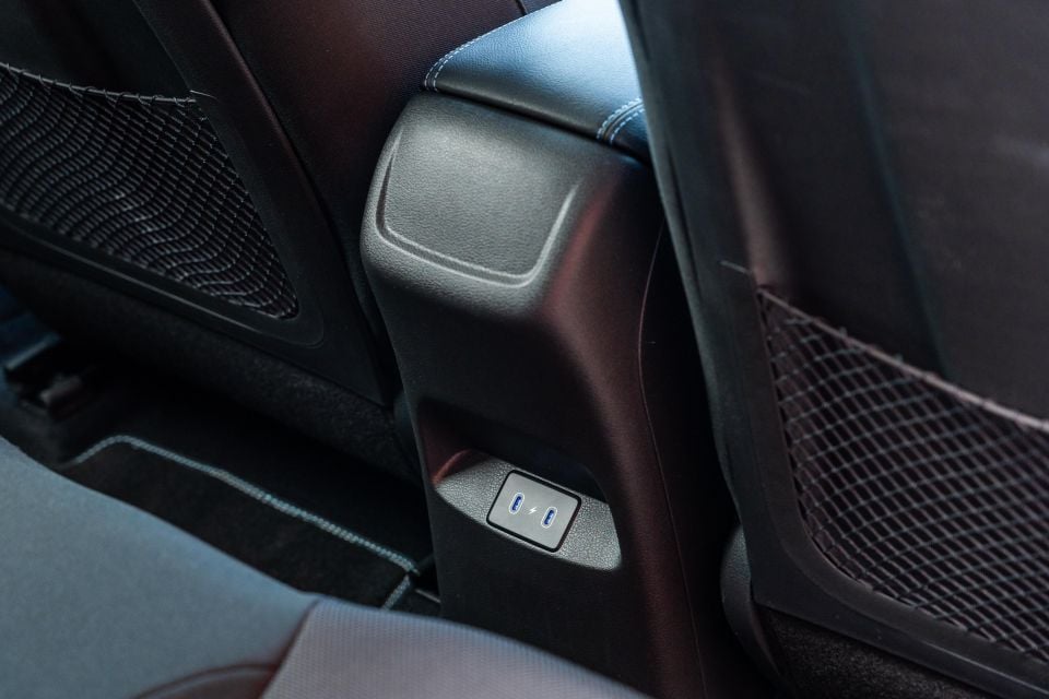 Amenities include a pair of USB-C outlets, map pockets and a centre armrest with integrated cupholders, although air vents are notably absent. Narrow door bins are just large enough for a drink bottle, but I imagine that it would be hard to reach on the move.