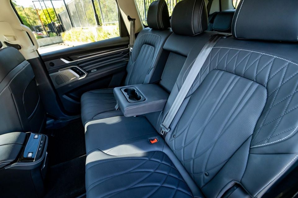 If you need to put kiddos in the back, though, they’ll have to sit in the second row. It has ISOFIX anchors in the window seats and three top-tethers, but the third row has no child seat fitment options, which is a shame. If you need that, have a look at a three-row Mazda SUV, a Kia Sorento or a Hyundai Santa Fe.