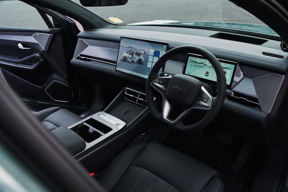 The base Premium FWD has variable frequency damping suspension, with all-wheel drive versions upgrading to BYD’s DiSus-C intelligent damping suspension.