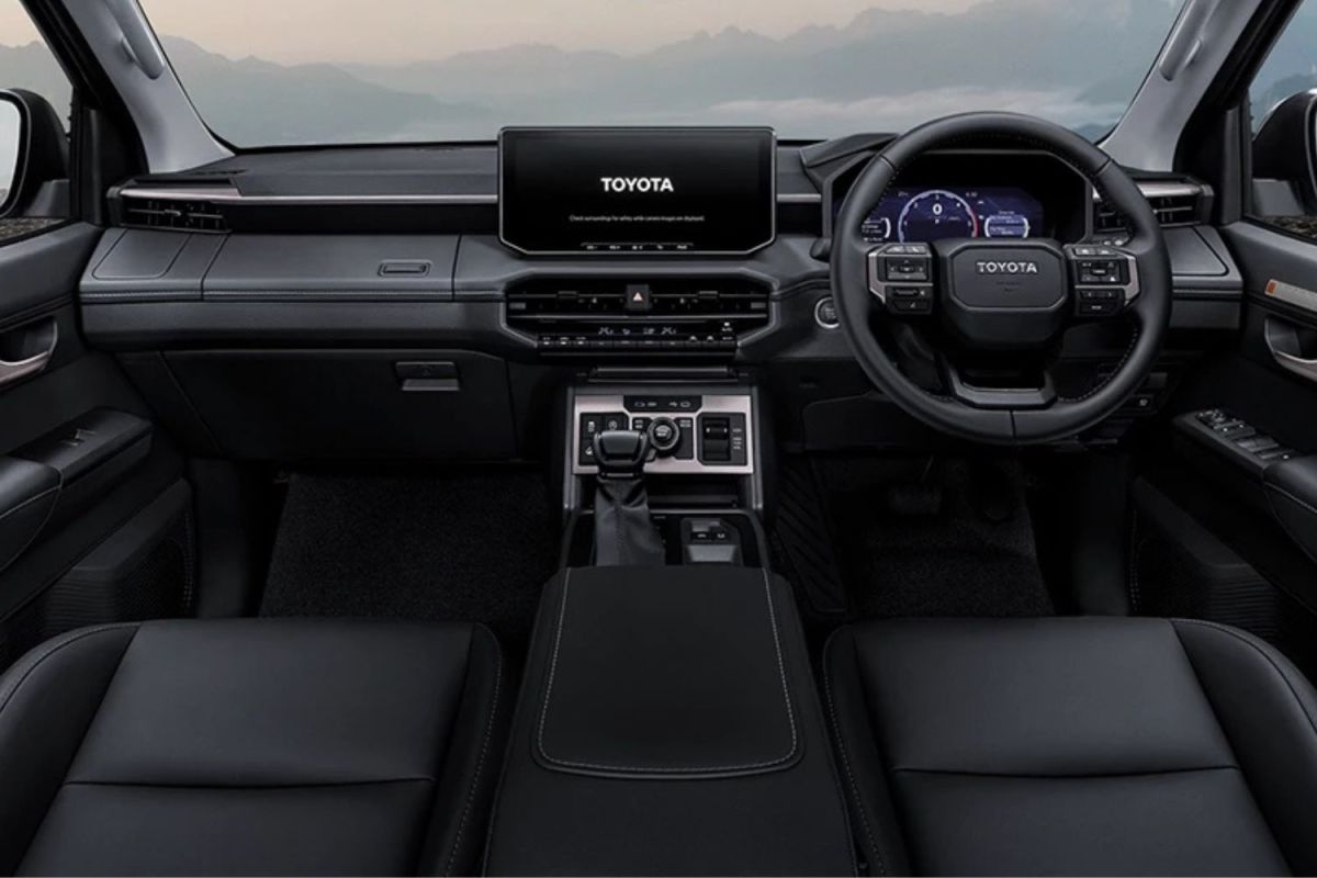 While the exterior is largely an evolution of the previous model, it’s the interior that gets a major overhaul. Here, we see that it takes some inspiration from models such as the Tacoma and Land Cruiser 250 Series. There’s the free-floating infotainment touchscreen, the chunky controls on the center stack, and a digital driver’s display. Lower, work-oriented trims of the Hilux get analog dials.